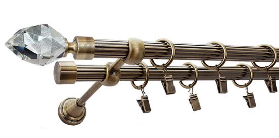 Karnisz LANSO Antyk Mosiądz, Podwójny 19 + 19 rura ryflowana