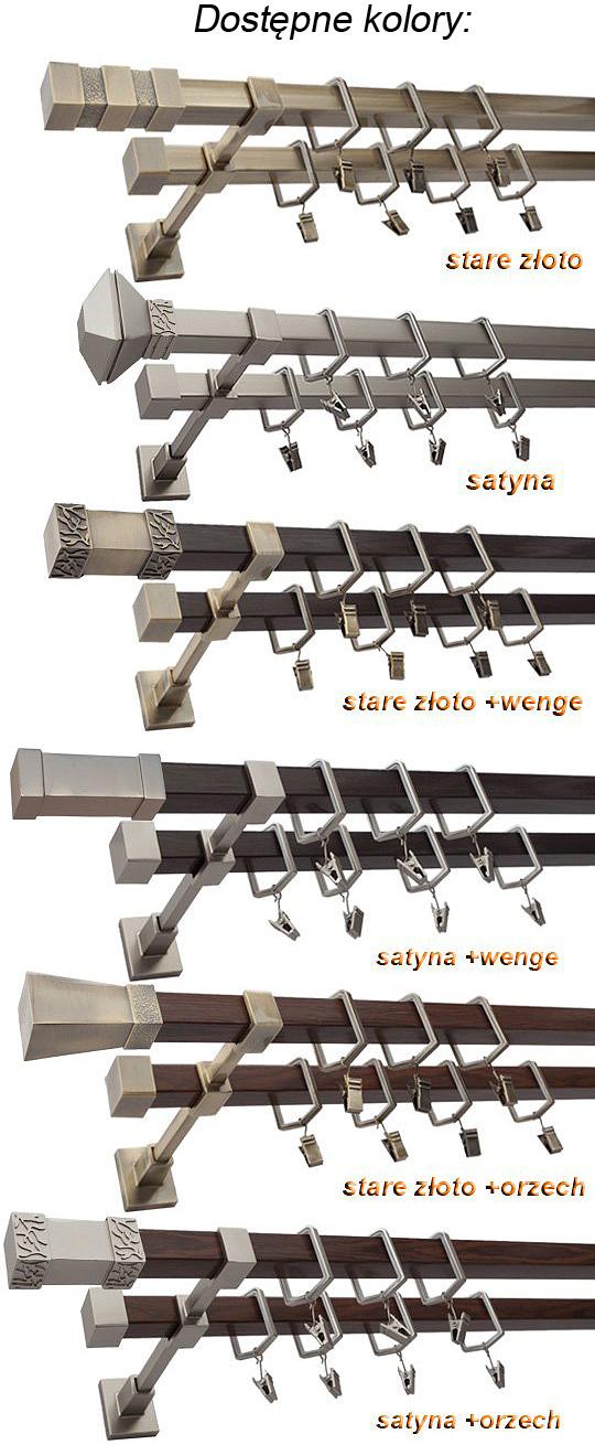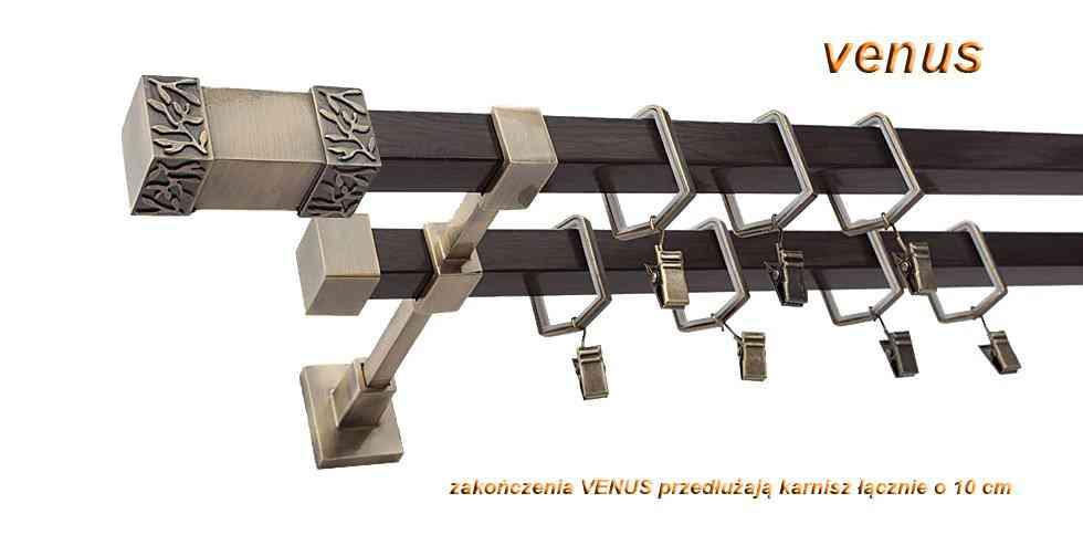 Karnisz VENUS Stare Złoto + Wenge, Podwójny 20 + 20 mm KWADRO