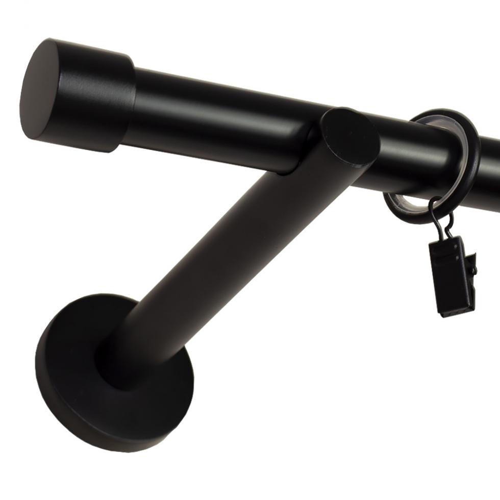 KARNISZ POJEDYNCZY fi 19 CZARNY MAT ZAŚLEPKA CICHE KÓŁKA