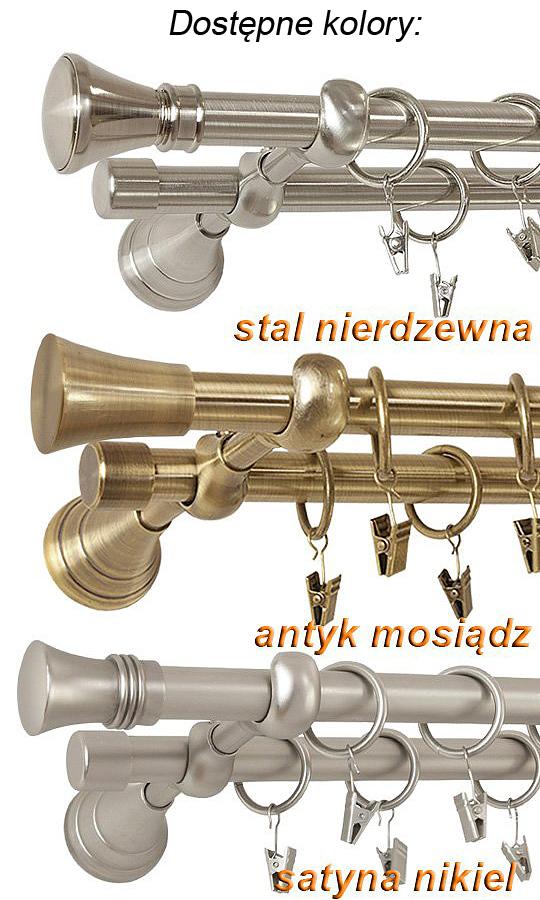 - do długości 240 cm dwie rurki o średnicy 19 mm, przy długości powyżej 240 cm cztery rury łączone łącznikiem wewnętrznym, który należy zastosować wewnątrz rurek. Łączenie nie jest widoczne ponieważ jest przykryte wspornikiem. Rurki wykonane z metalu galwanizowane pokryte powłoką lakieru która zwiększa odporność na ścieranie