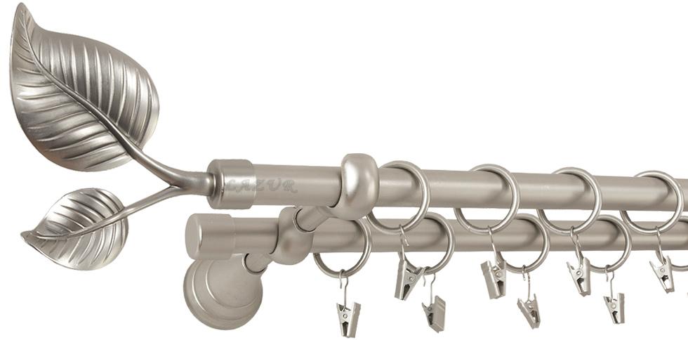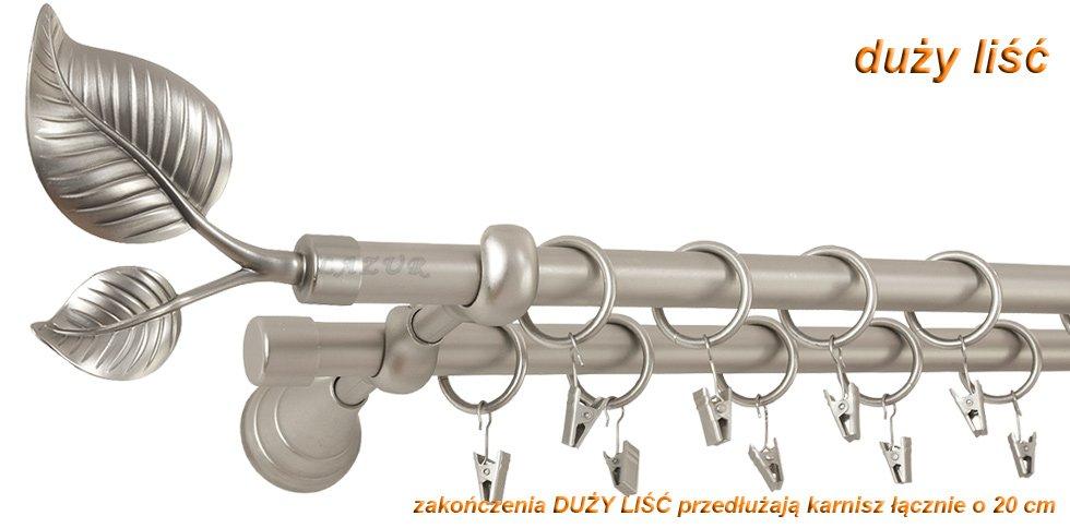 Karnisz DUŻY LIŚĆ Satyna Nikiel Podw. 19 + 19 wspornik regulowany
