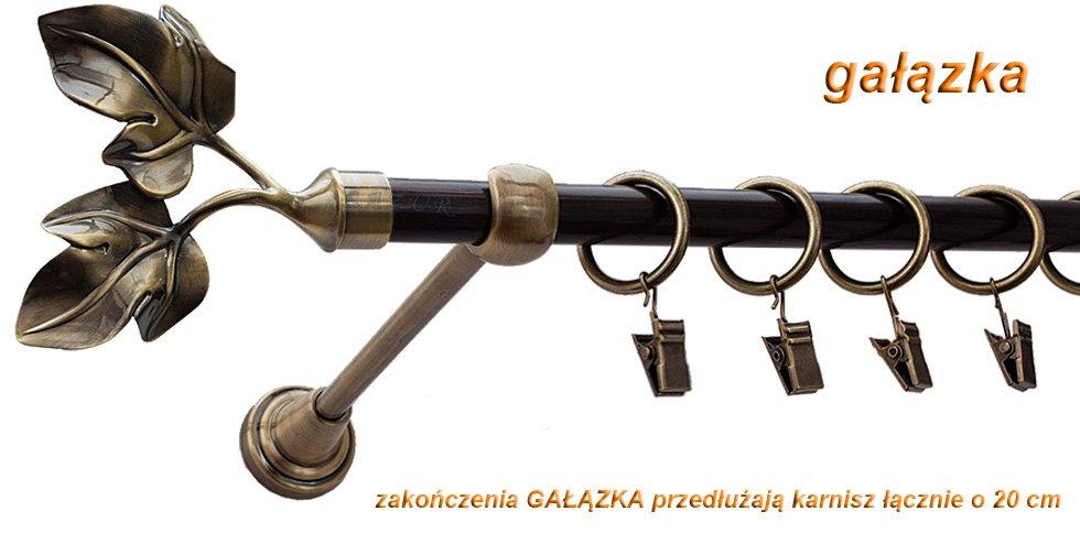 Karnisz GAŁĄZKA Antyk Mosiądz, Pojedynczy 16 rura wenge