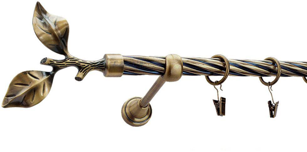Karnisz LIŚĆ RÓŻY Antyk Mosiądz, Pojedynczy 19 rura skrętna