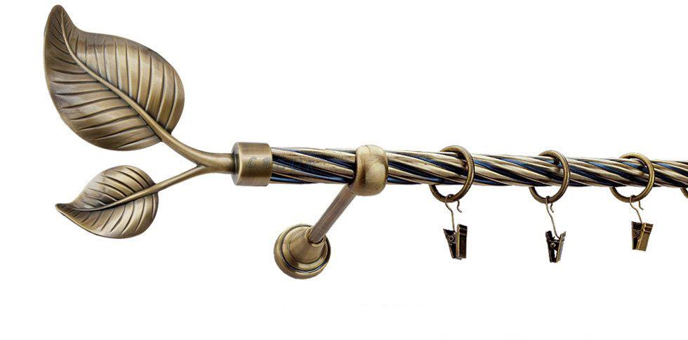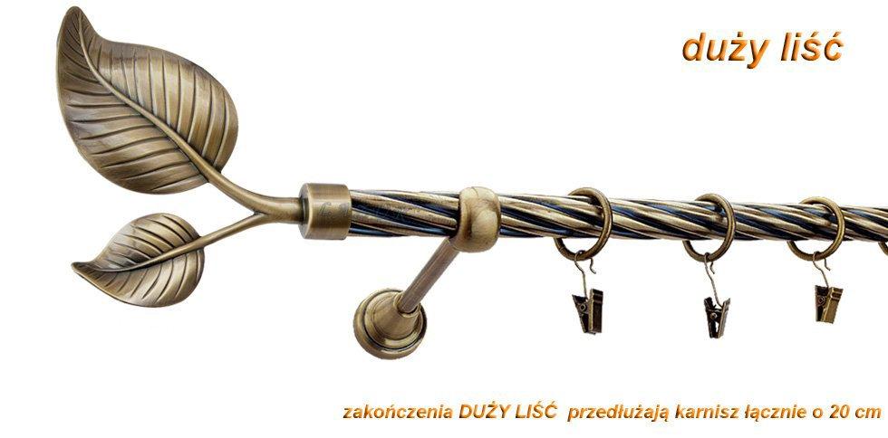 Karnisz DUŻY LIŚĆ Antyk Mosiądz, Pojedynczy 19 rura skrętna