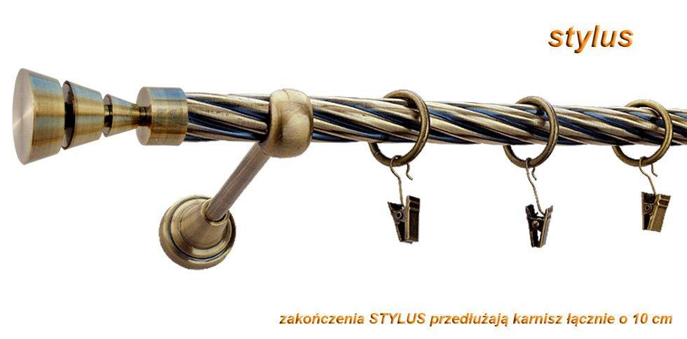 Karnisz STYLUS Antyk Mosiądz, Pojedynczy 19 rura skrętna