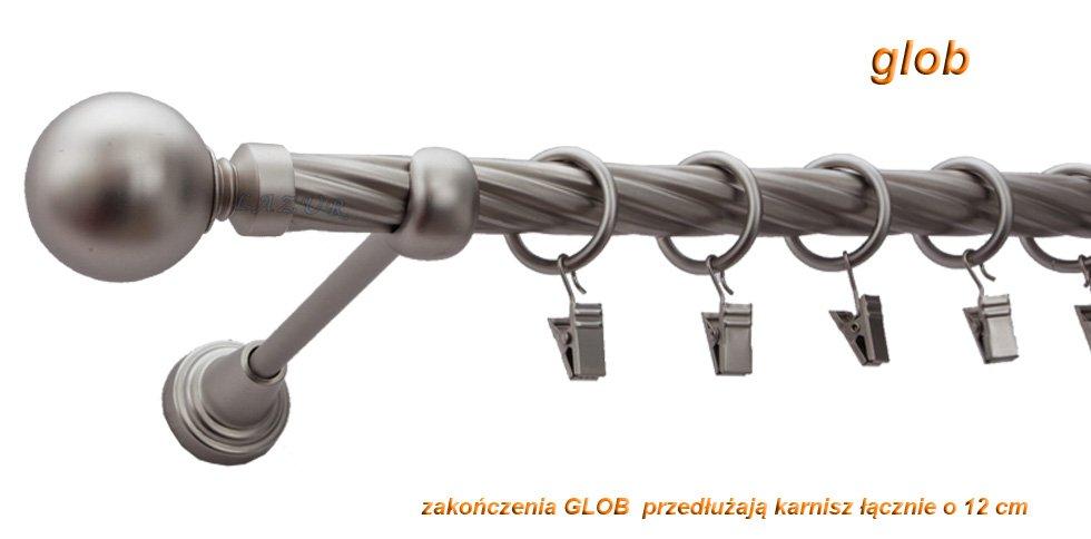Karnisz GLOB Satyna Nikiel, Pojedynczy 19 rura skrętna