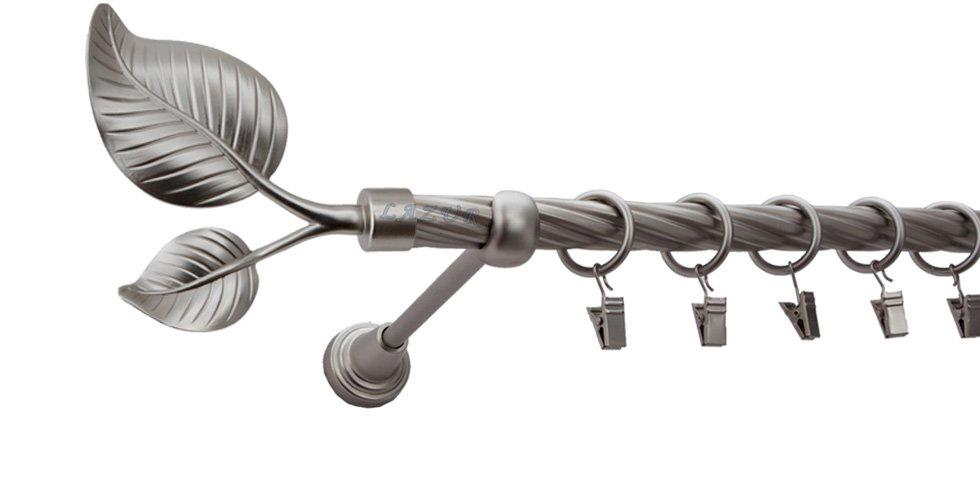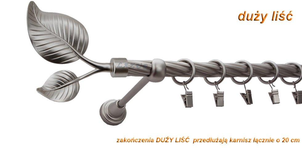 Karnisz DUŻY LIŚĆ Satyna Nikiel, Pojedynczy 19 rura skrętna